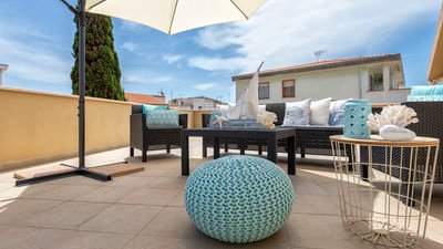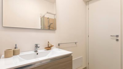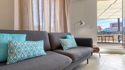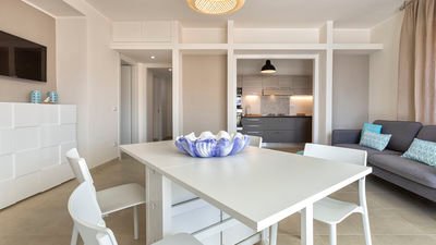 It has a second bathroom, a fully equipped kitchen and a dining room with sofa which leads to a partly covered terrace where you can dine and partly a solarium with a relaxation area with sofa and armchairs.