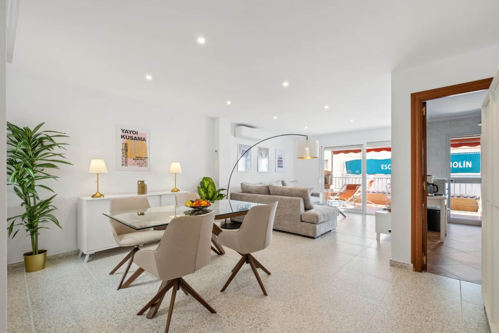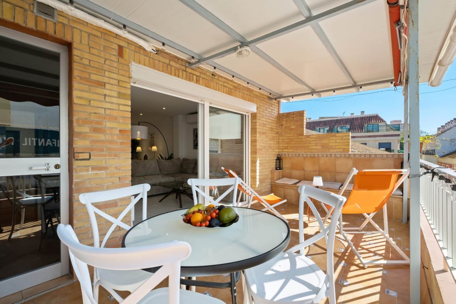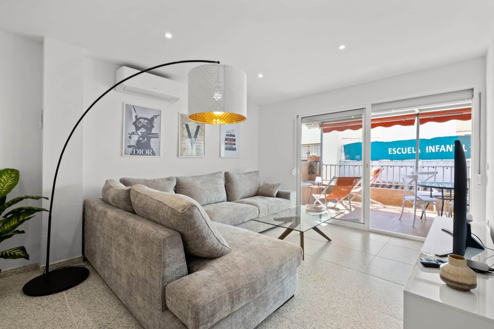 antastic completely renovated apartment with large terrace, located in the very center of Fuengirola, 100 m from Constitution Square and 200 m from the main beach. It has 2 air-conditioned bedrooms, an office, a very large living room with dining room opening onto a magnificent covered terrace of 20m². The apartment is fully air-conditioned. Fully equipped kitchen, washing machine, dishwasher. Accessible to people with reduced mobility with elevator and stair lift at the entrance to the residence. Everything within reach, the beach, restaurants, shops, direct train to Malaga airport (20 minutes, Fungirola stop) and Malaga. A car is not necessary for a wonderful stay. The location is central with easily accessible services: cafes, restaurants, supermarkets, shopping, medical centers, car rental, language schools and attractions for children. On foot the residence is ideally located: -2 mins from the beach -3 mins from Plaza de la Constitución -5 mins from BIOPARC park -1O mins from Fuengirola train station (direct train access to Malaga international airport in 30 mins). For those who choose the car Marbella is 20 minutes away, Malaga 25 minutes away, Granada 1h30 and Seville 2h15.