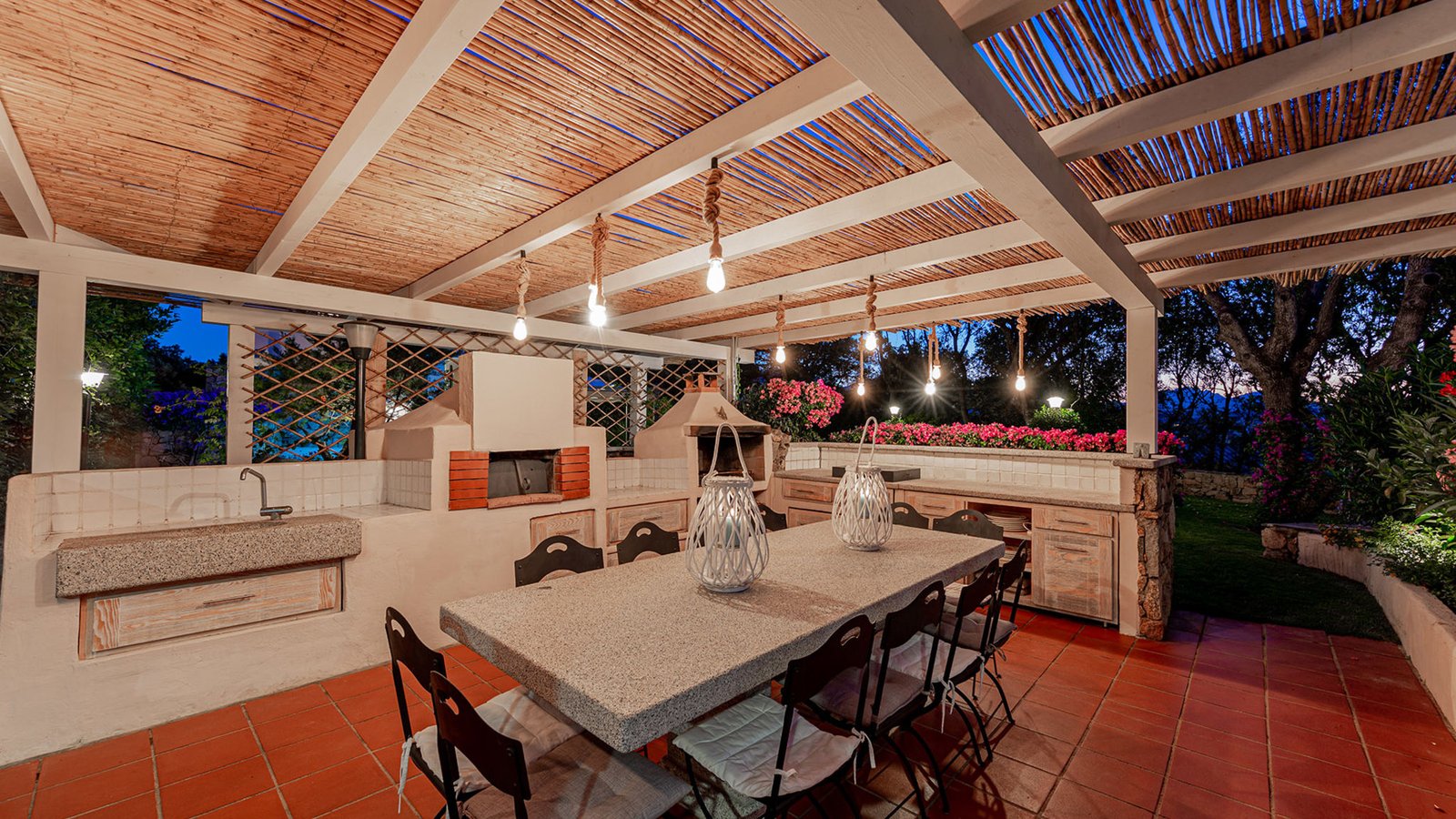 The outdoor space consists of the garden and enriched by private swimming pool, barbecue, outdoor dining area and wood oven.