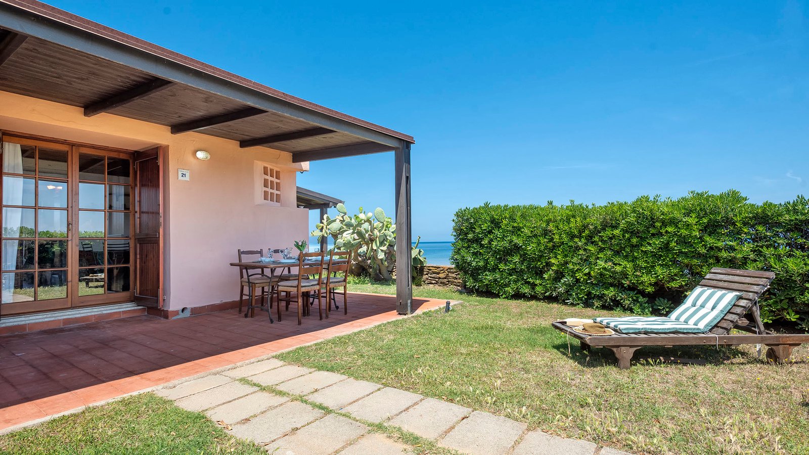 Furnished with care and taste, it has everything you need for outdoor dining a few meters from the coast, mesmerized by the view of the coast and the sound of the waves breaking on the shore.