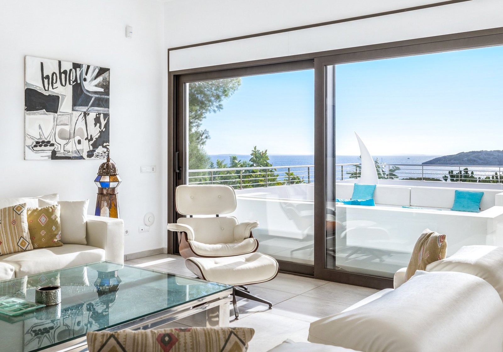 his beautiful whitewashed modern villa was recently constructed and is located just 5 minutes from the center of Ibiza Town and even closer to Pacha, Destino and Talamanca beaches. It boasts stunning sea views as well as views of Formentera and the Dalt Vila in Ibiza Town.