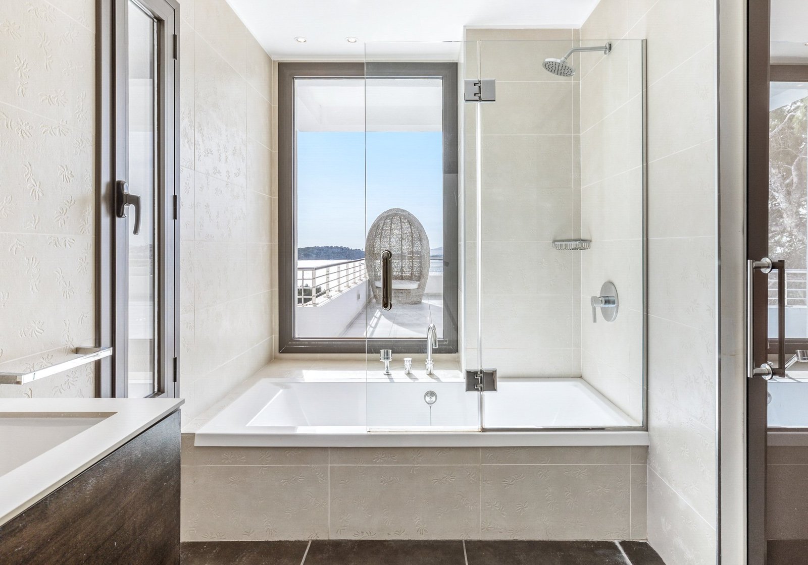 The villa is set over three floors. The ground floor consists of an intimate lounge and kitchen as well as two en suite bedrooms. On the second floor, there are two additional en suite bedrooms, a fully fitted kitchen and large living and dining area that opens onto the large terrace. The top floor is devoted entirely to the Master bedroom with its en suite bathroom and private terrace with an amazing view of the sea.