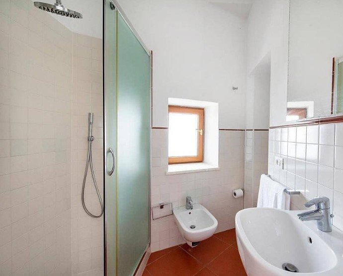 Villa 3 bedroom is an elegant and welcoming two-story apartment that is part of a villa which faces the sun and the sea. It sleeps eight people. From the villa you will enjoy an enchanting view of the sea and of the coastline. This villa is 120 square meters (1290 square feet). It features a private swimming pool, two panoramic private terraces, a private garden, air conditioning (please read description below to check in which rooms the units are installed) and WI-FI Internet access.