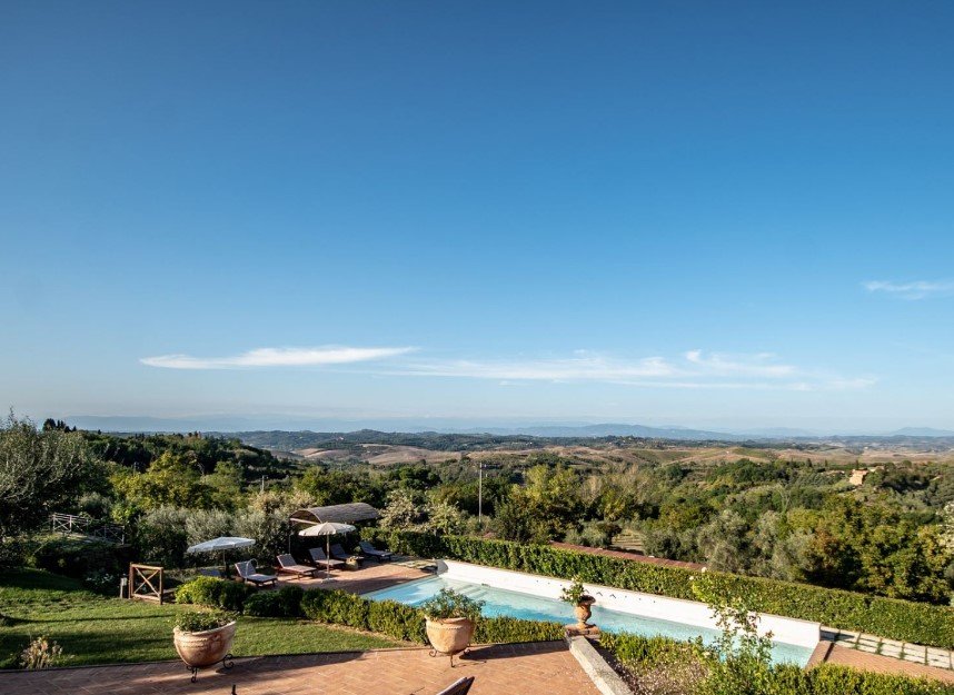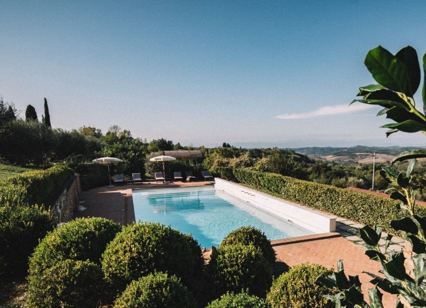 Set in its own private park, this charming semi-detached villa with spectacular vistas is superbly located for exploring the very best of Tuscany: Firenze (easily reached by train to the central Santa Maria Novella Station), Siena, The Chiantishire, San Gimignano, Lucca, Pisa, Volterra, San Miniato and Certaldo are less than an hour driving. Villa 4 bedroom in Montaione is extremely spacious, and further enhanced by an entirely fenced private garden (3000 sqm) with tended lawns, several plants, comfortable private pool and big solariun-terrace with lounge area, patio and spectacular view. Once inside the stylish airy rooms with antiques and elegant furniture, Tuscan ceiling and tiles are classy and grandiose. It is a great holiday for large families or groups of friends who want to live in deluxe and peaceful atmosphere with only the sounds of nature to disturb the tranquillity. A stay at Villa 4 bedroom in Montaione provides completely unique experience.