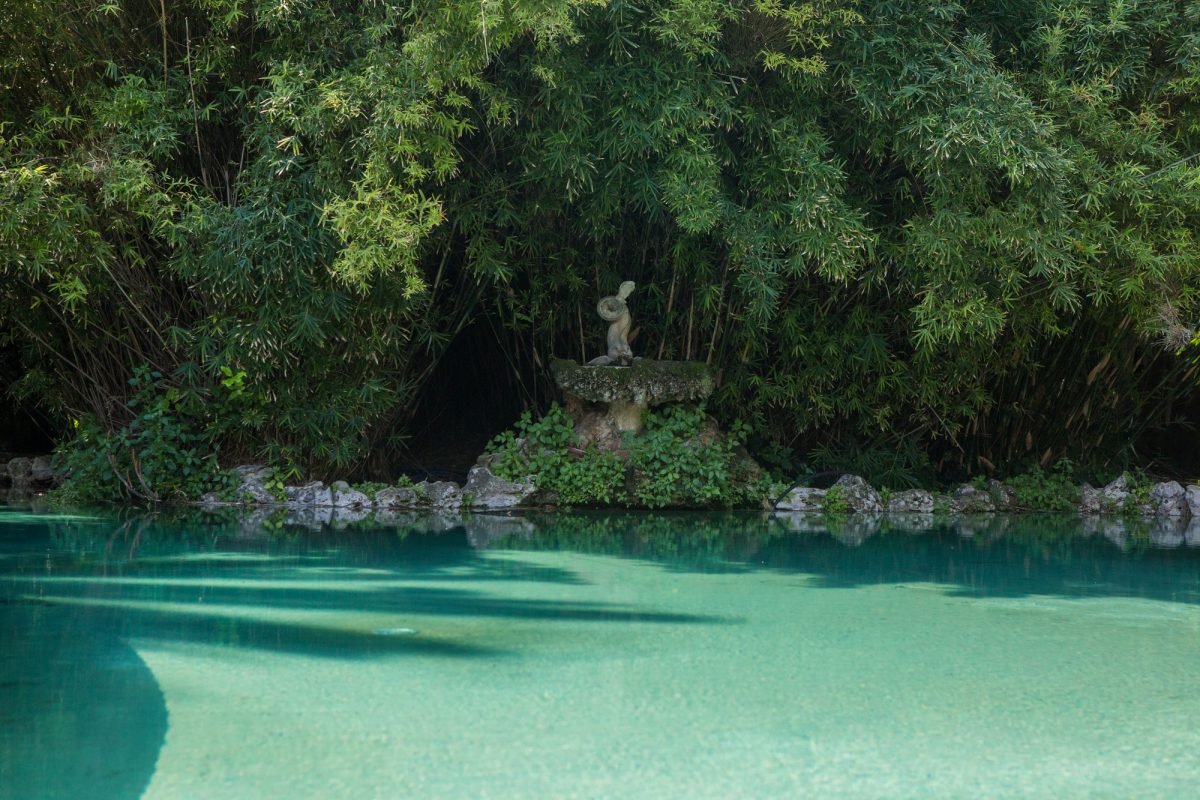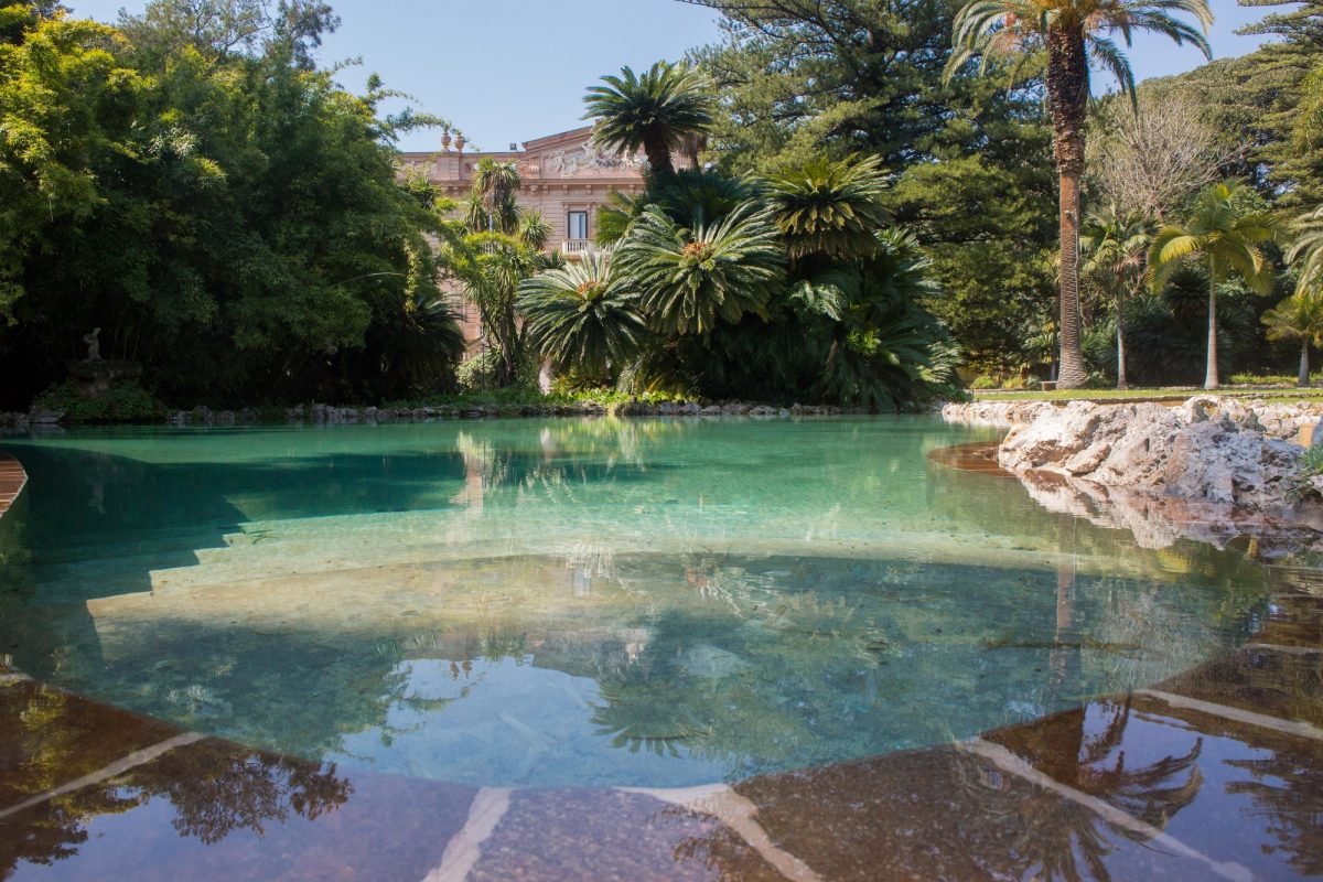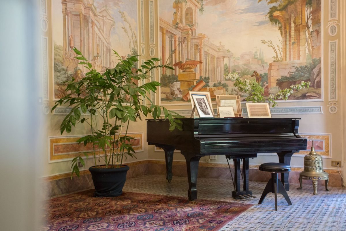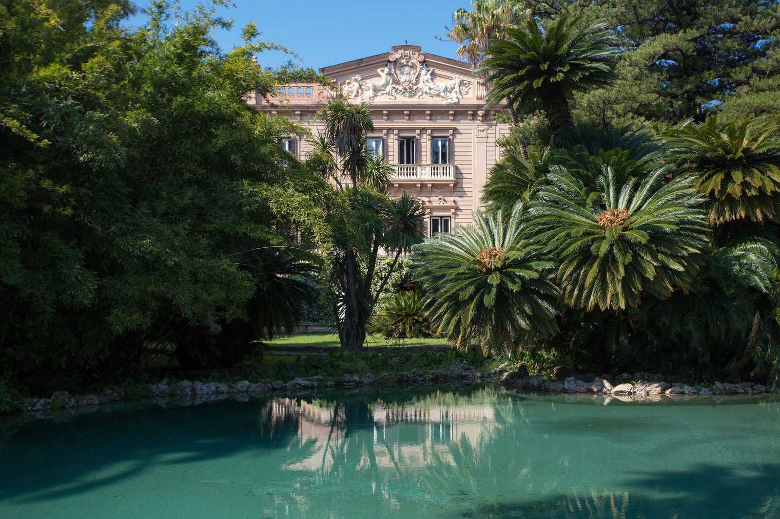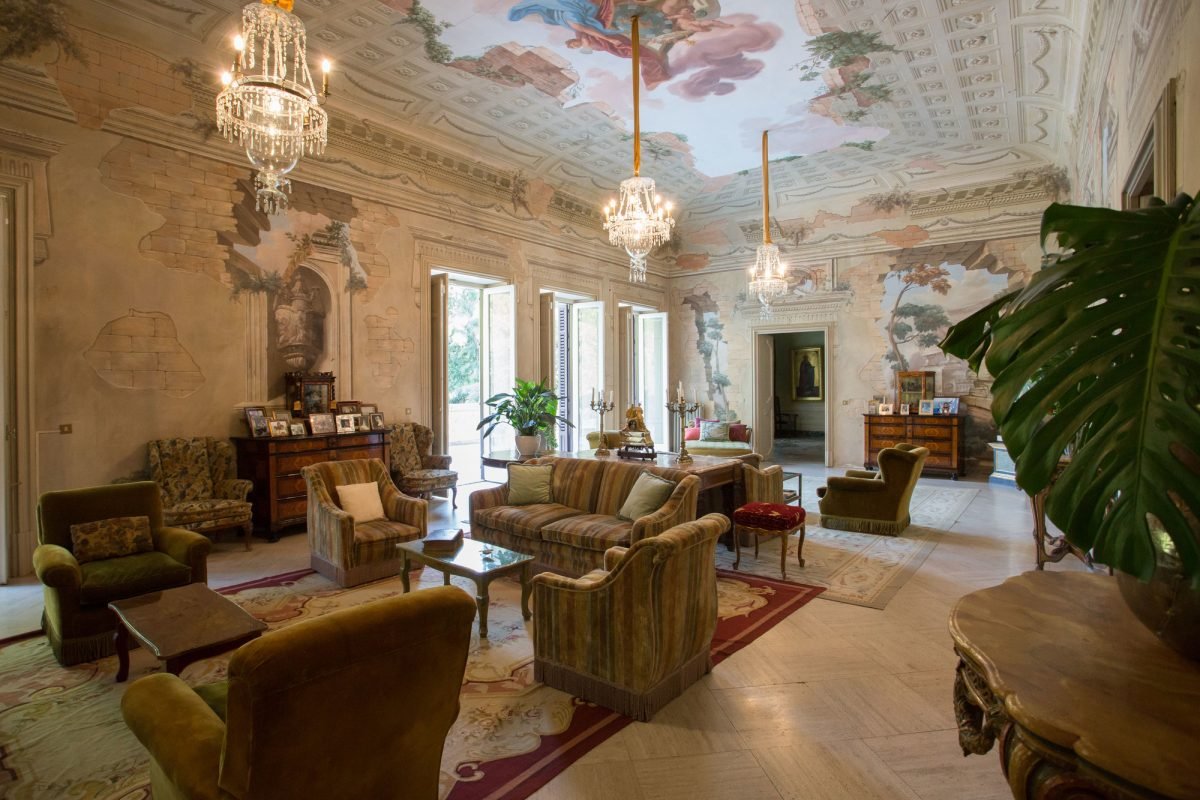 The villa is surrounded by an enormous, nationally recognised park, a typical example of the ‘giardino romantico’ or romantic gardens so popular in the late 18th century when the villa was built, with lush tropical vegetation, a lake on which a pair of swans called Tristan and Isotta live, and a miniature neoclassical temple. The second lake has been transformed into a swimming pool.