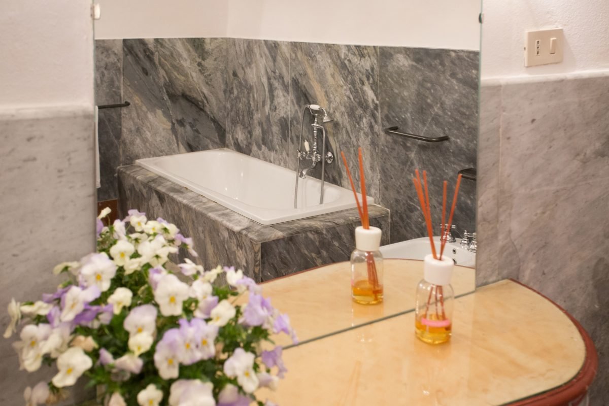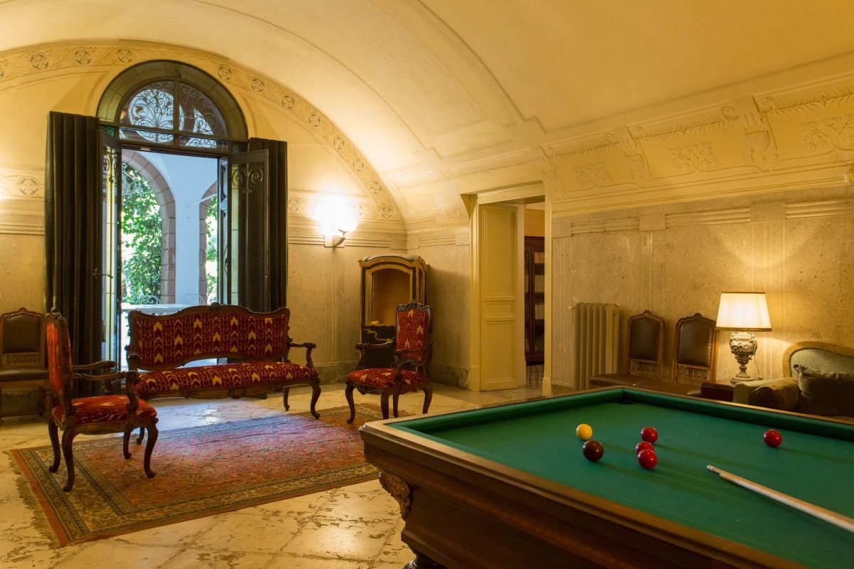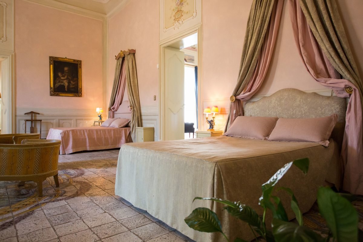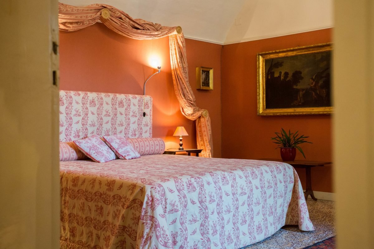 The piano nobile, accessed either via a huge billiards room, or via an imposing staircase, consists of a gran salone, or main reception room, followed by a series of interconnecting parlours or salotti. Rooms are magnificent – frescoed, with floors of maiolica, and furnished with period pieces. The result is not only visually appealing and suffused with historic atmosphere, but very comfortable – you will feel immediately at home!