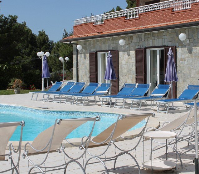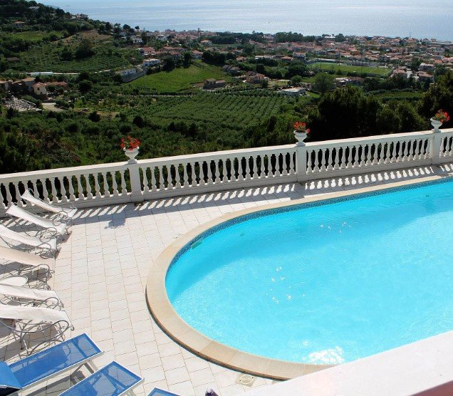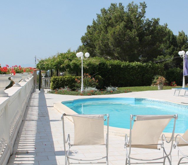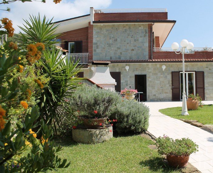 Villa 7 bedroom is situated in an elevated position on a pine-tree covered hill overlooking the bay of Santa Maria di Castellabate. The two-story building is surrounded by private fenced grounds of 1000 square meters (10000 square feet).