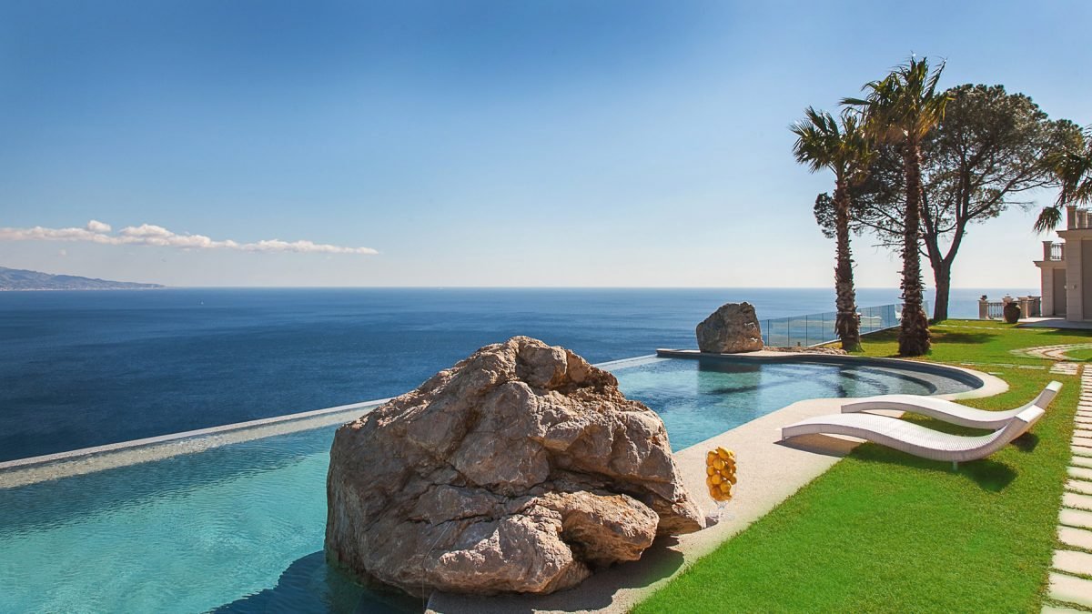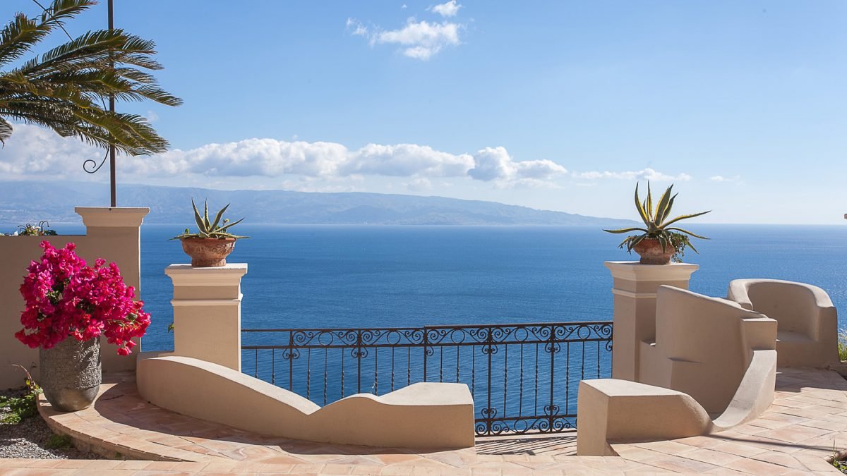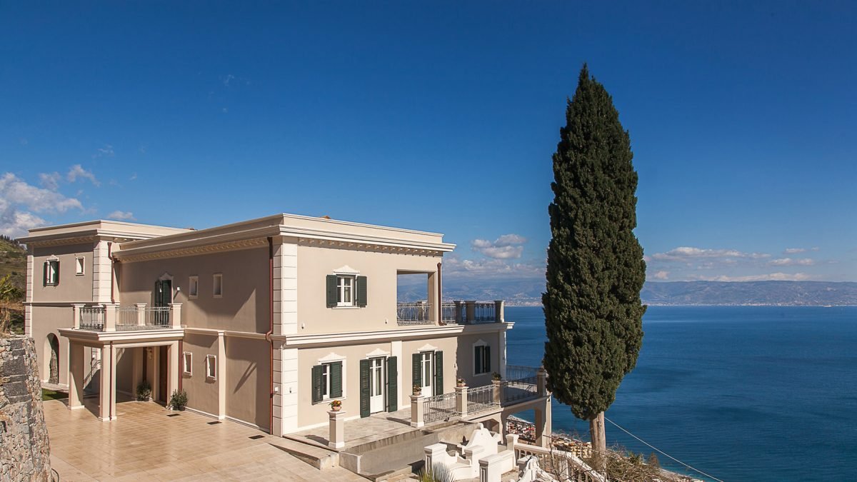 Villa 8 bedroom in Itala Marina is located on a clifftop looking over the Strait of Messina to the coast of Calabria, surrounded by 10 hectares of citrus groves.