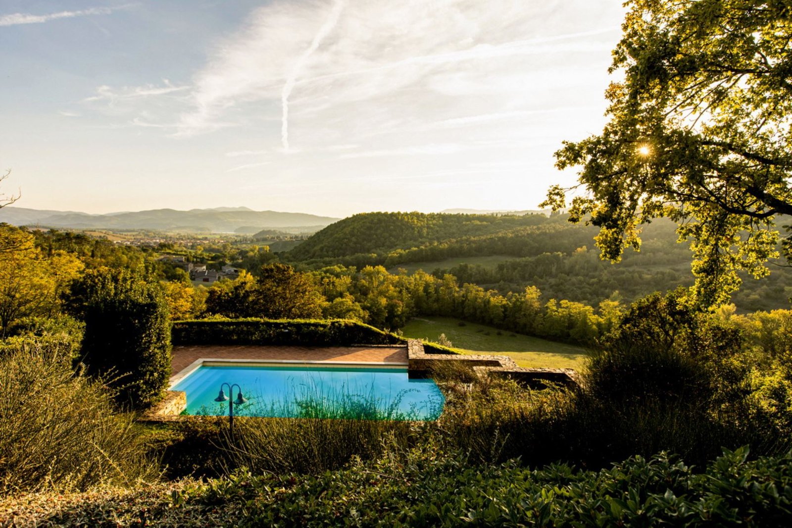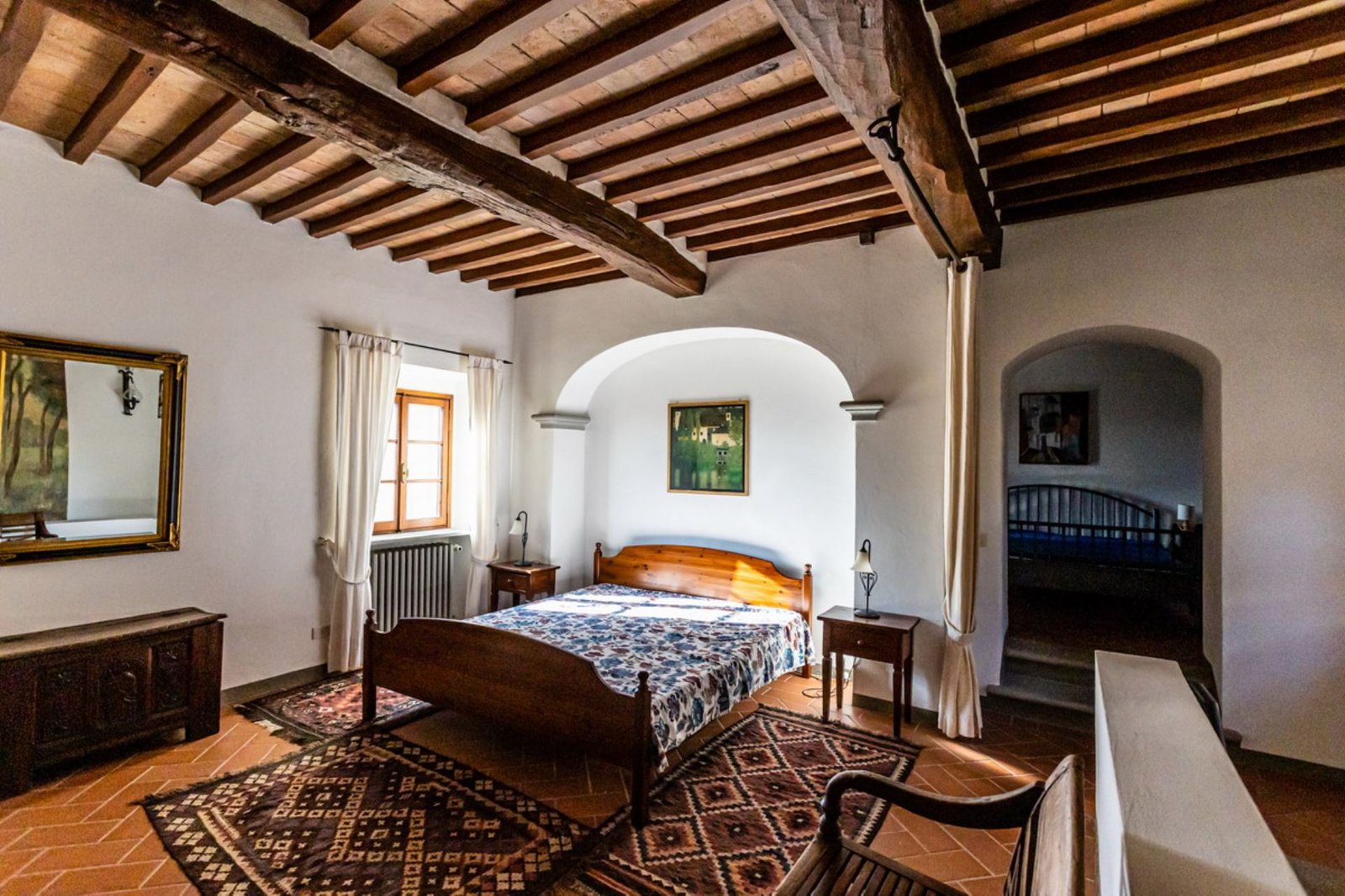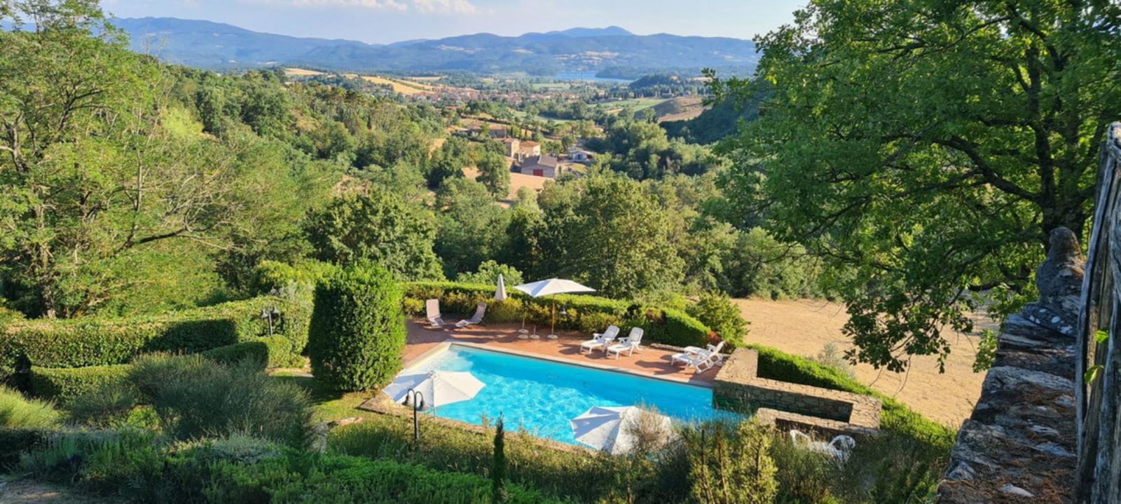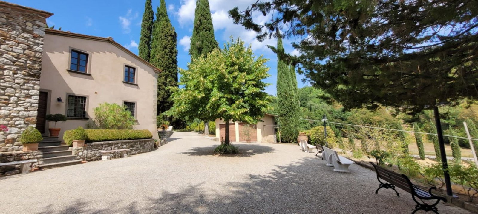 In a lovely setting on a hillside, this Villa is placed among olive groves and cypress plants. Encircled by the most incredible views of Florentine countryside, Villa 8 bedroom has almost everything: privacy, comfort, space inside and outside, panoramic pool, sun, shade and the list goes on and on. A great base as well from which to explore the heart of Tuscany with Florence (easily reachable in 35 minutes by train), Mugelloshire, Fiesole, the Chianti Rufina, Borgo San Lorenzo, Scarperia, Bilancino Lake, Barberino’s and Mc Arthur Faschion Outlets and Mugello circuit (very famous for Motorcycle Grand Prix). All these situations are less than 40 minutes driving. The house is composed of 4 apartments (4+4+2+4) with independent entrances, but it is rented as private villa for 3/4 families and couples or group of friends. The fixtures and fittings are of good standard and the furnishing are tasteful. To one side of the property are a swimming pool which also provides an excellent panorama, a large garden and a pergola of wisteria flowers for “dining al fresco.”