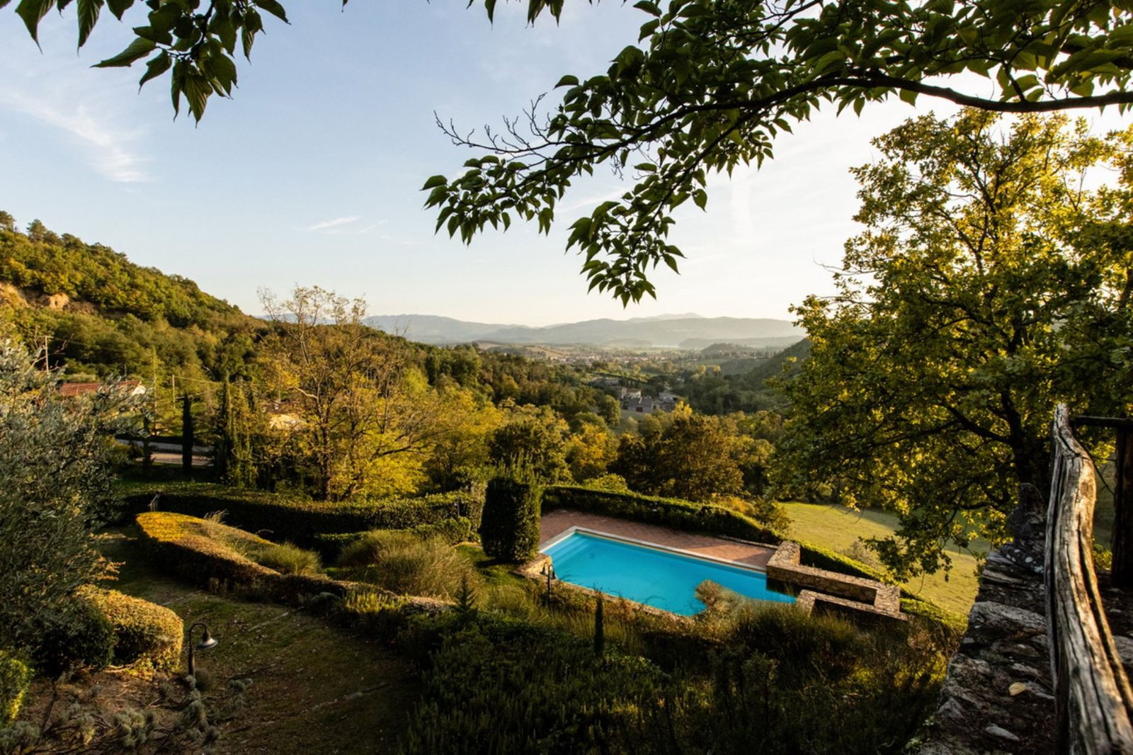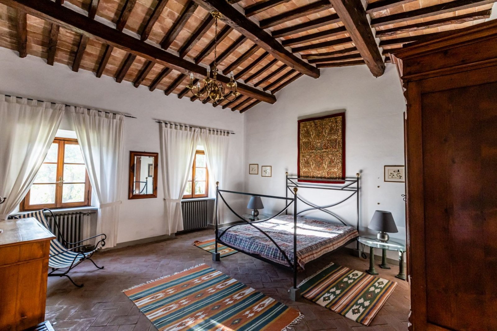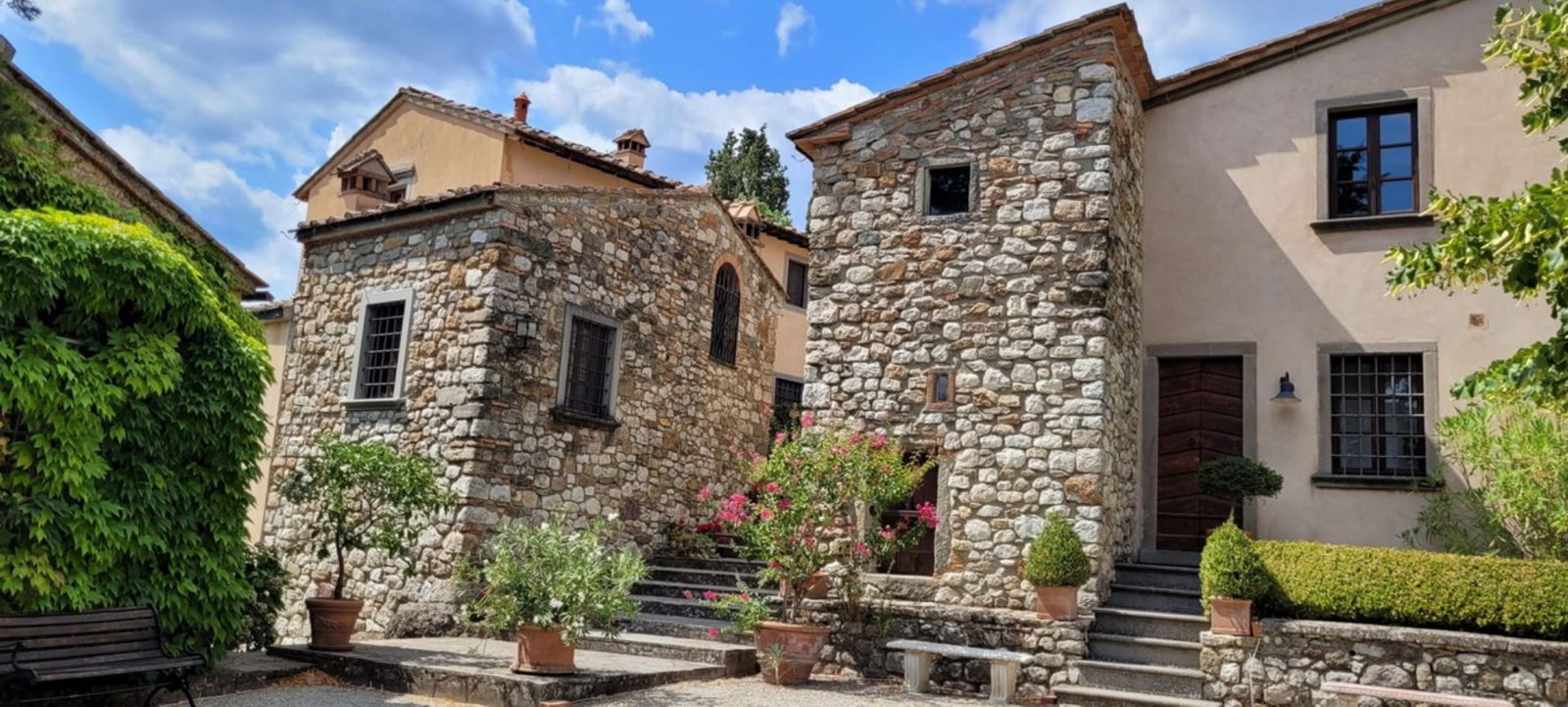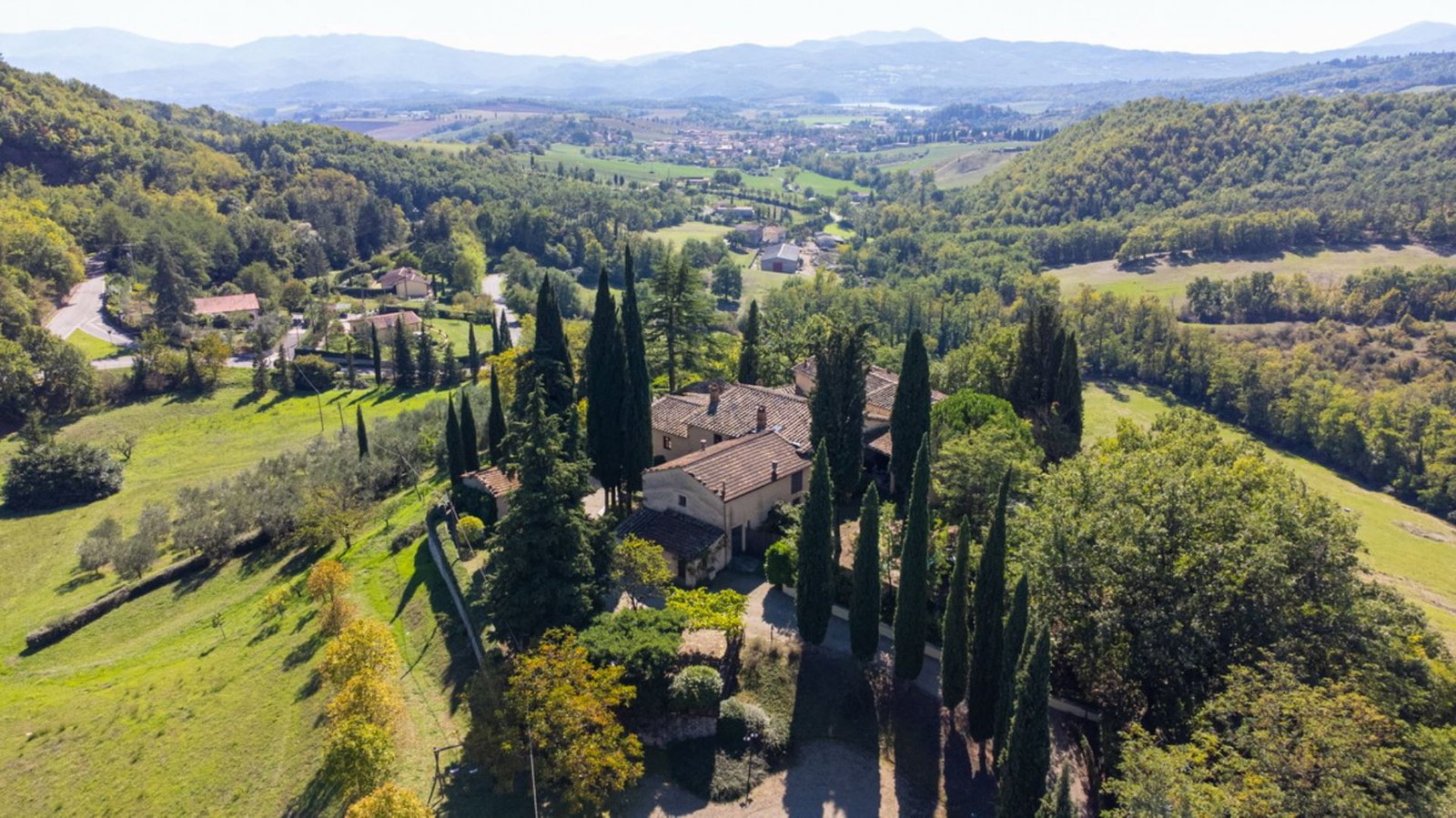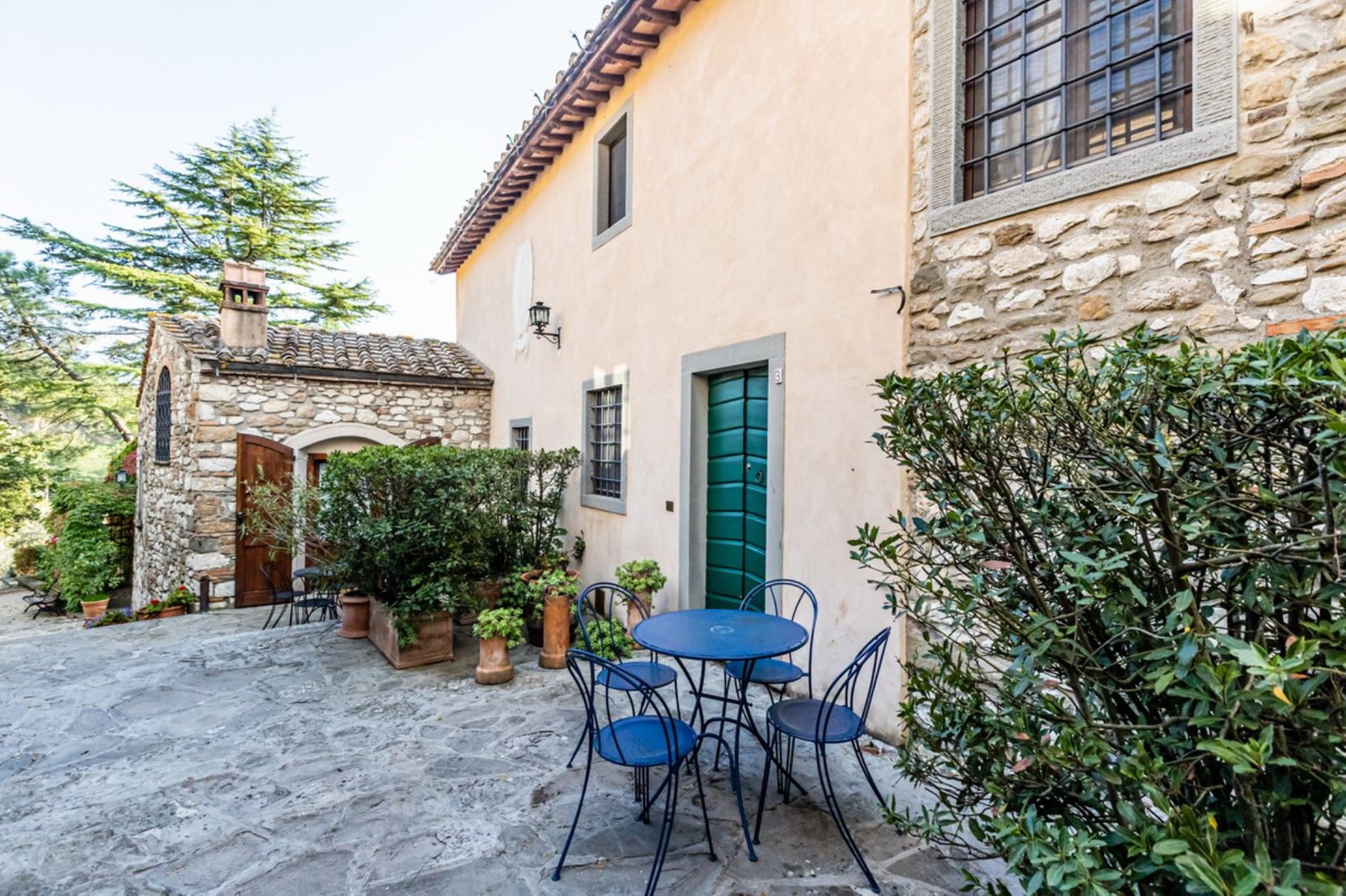 In a lovely setting on a hillside, this Villa is placed among olive groves and cypress plants. Encircled by the most incredible views of Florentine countryside, Villa 8 bedroom has almost everything: privacy, comfort, space inside and outside, panoramic pool, sun, shade and the list goes on and on. A great base as well from which to explore the heart of Tuscany with Florence (easily reachable in 35 minutes by train), Mugelloshire, Fiesole, the Chianti Rufina, Borgo San Lorenzo, Scarperia, Bilancino Lake, Barberino’s and Mc Arthur Faschion Outlets and Mugello circuit (very famous for Motorcycle Grand Prix). All these situations are less than 40 minutes driving. The house is composed of 4 apartments (4+4+2+4) with independent entrances, but it is rented as private villa for 3/4 families and couples or group of friends. The fixtures and fittings are of good standard and the furnishing are tasteful. To one side of the property are a swimming pool which also provides an excellent panorama, a large garden and a pergola of wisteria flowers for “dining al fresco.”