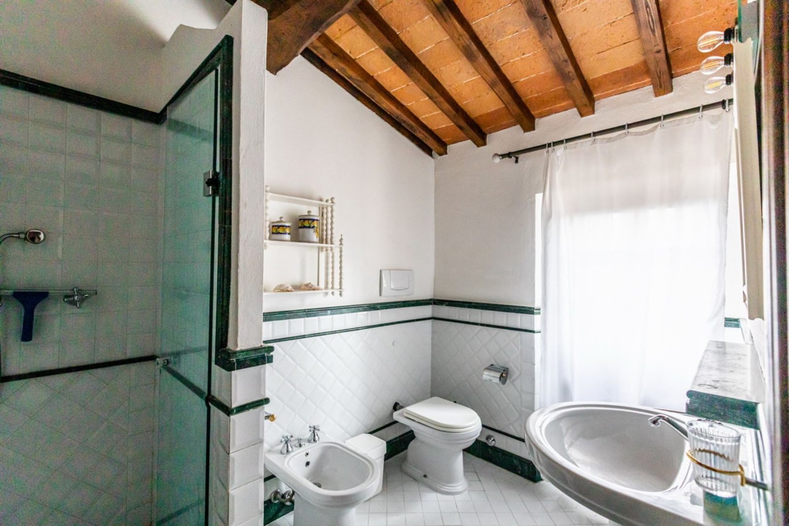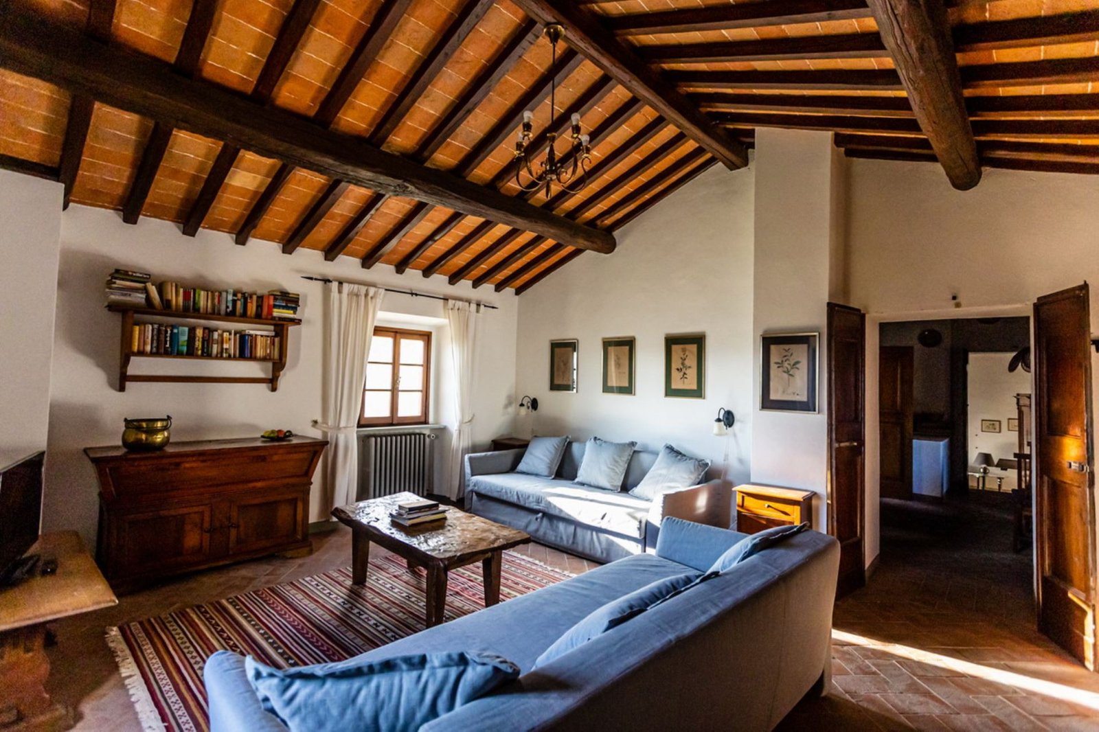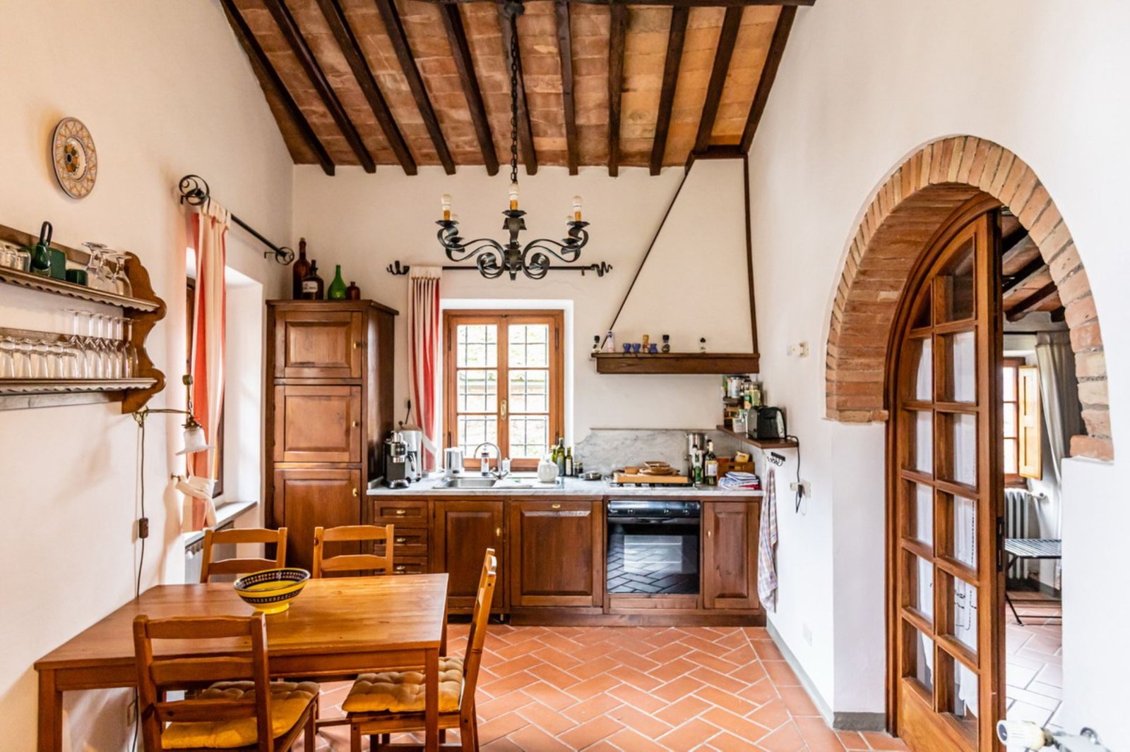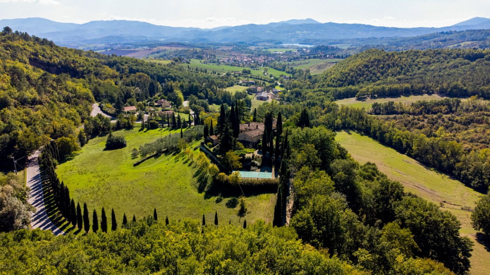 In a lovely setting on a hillside, this Villa is placed among olive groves and cypress plants. Encircled by the most incredible views of Florentine countryside, Villa 8 bedroom has almost everything: privacy, comfort, space inside and outside, panoramic pool, sun, shade and the list goes on and on. A great base as well from which to explore the heart of Tuscany with Florence (easily reachable in 35 minutes by train), Mugelloshire, Fiesole, the Chianti Rufina, Borgo San Lorenzo, Scarperia, Bilancino Lake, Barberino’s and Mc Arthur Faschion Outlets and Mugello circuit (very famous for Motorcycle Grand Prix). All these situations are less than 40 minutes driving. The house is composed of 4 apartments (4+4+2+4) with independent entrances, but it is rented as private villa for 3/4 families and couples or group of friends. The fixtures and fittings are of good standard and the furnishing are tasteful. To one side of the property are a swimming pool which also provides an excellent panorama, a large garden and a pergola of wisteria flowers for “dining al fresco.”