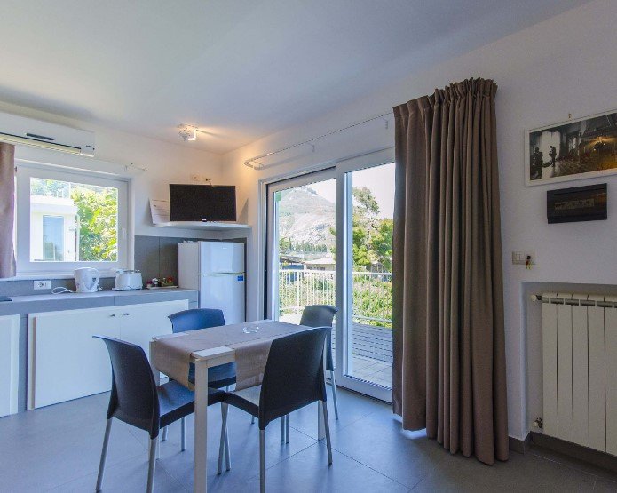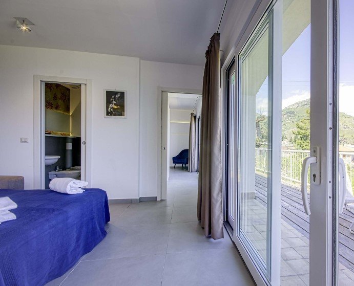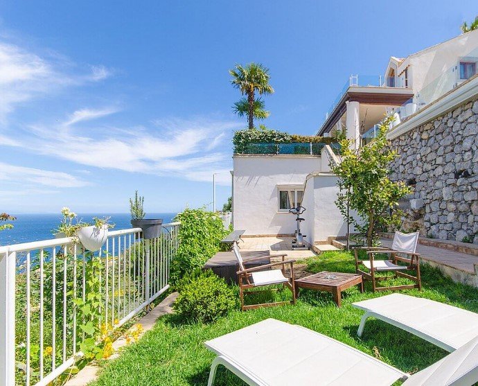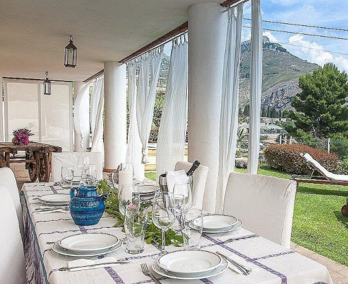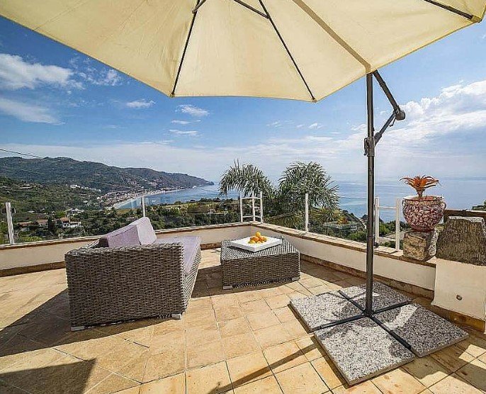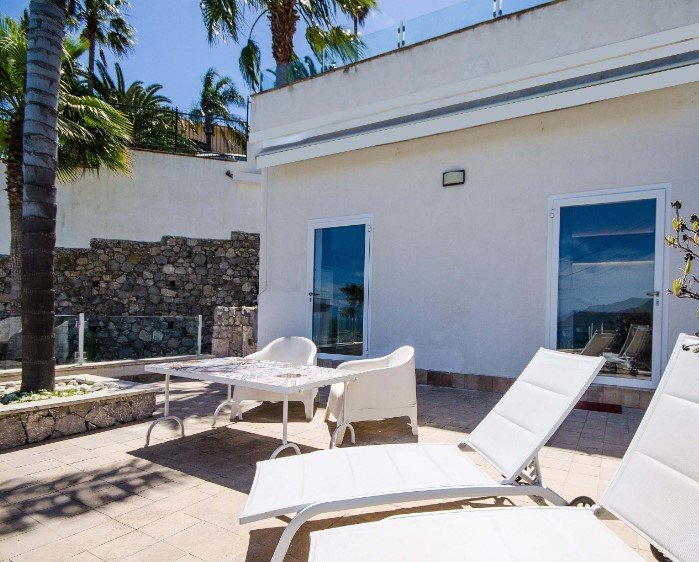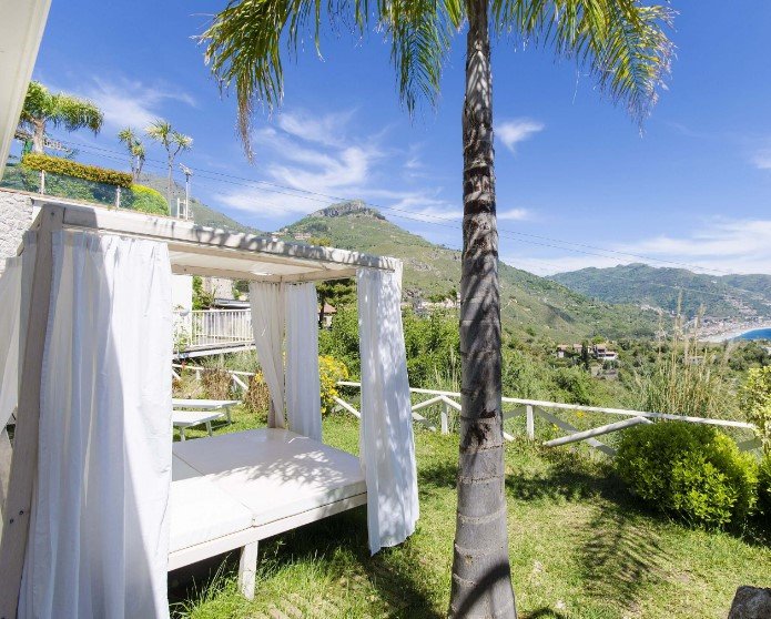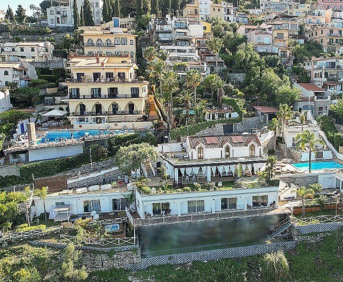 You will be approximately 600 meters (655 yards) from the borough of Taormina, where you will find restaurants, shops and public transportation. You will find the closest restaurant at 550 meters (600 yards), a grocery store and the bus stop at 600 meters (roughly 1970 feet) and the closest beach (Isola Bella) at roughly 850 meters (930 yards) including 134 stairway steps (other beaches with less steps to climb are also available in the area). You will reach Villa Edipo Grande from the street level going down a route that includes approximately nine stairway steps.
