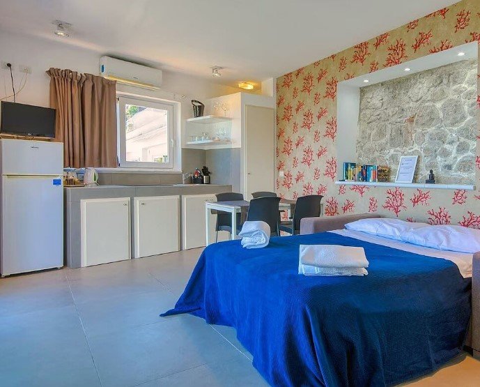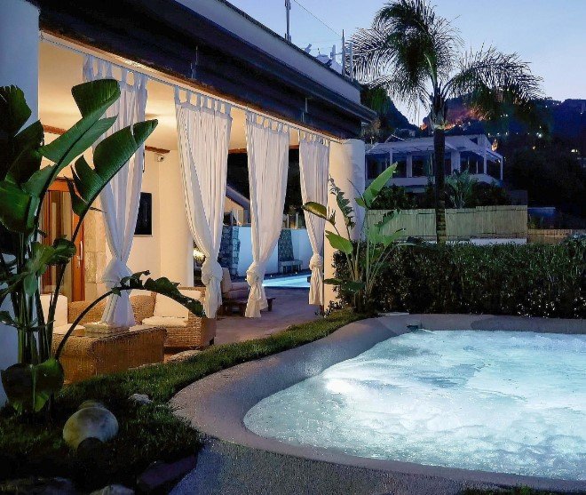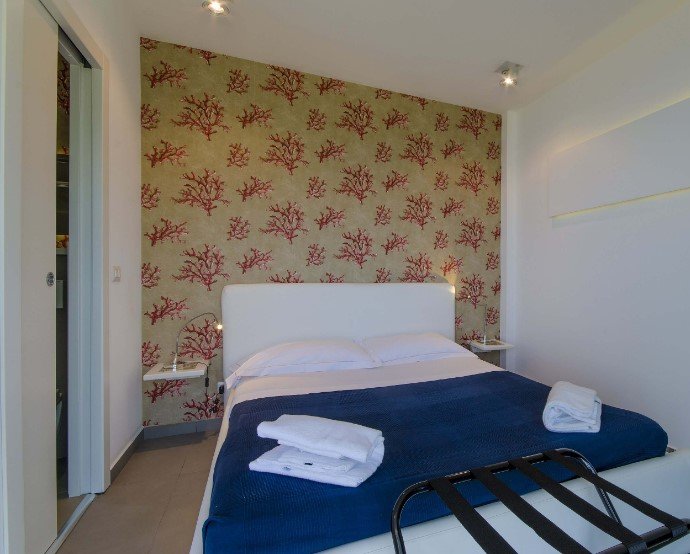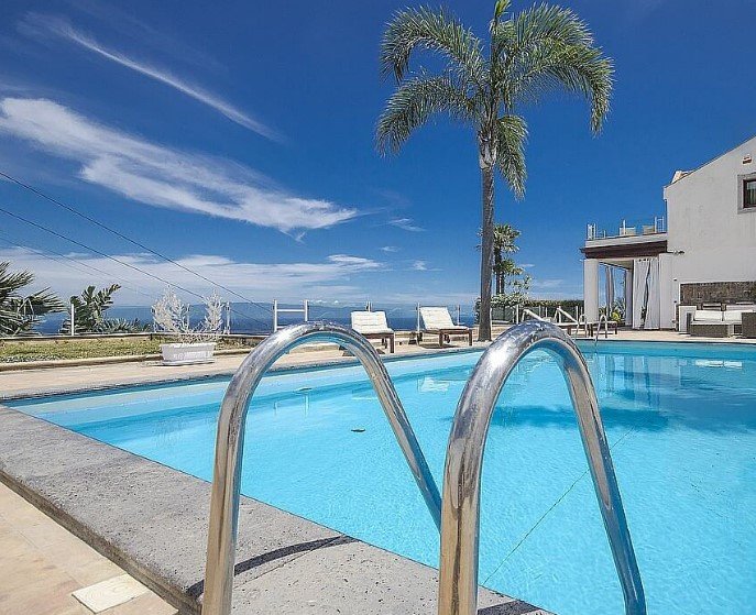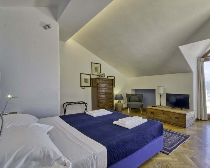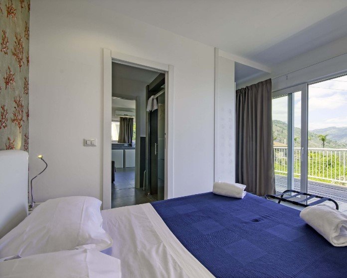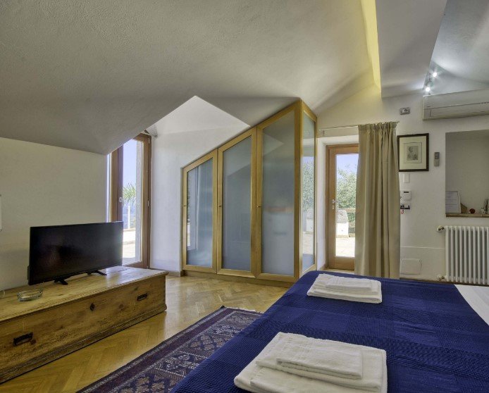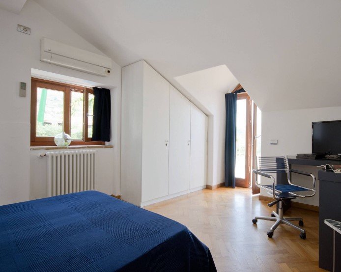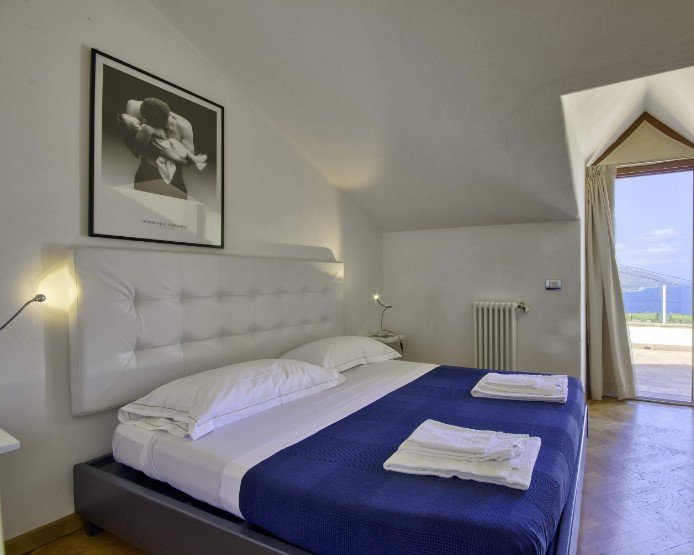 Villa 8 bedroom is a bright three-story villa which faces the sun and the sea. It sleeps 29 people. From Villa 8 bedroom you will enjoy a spellbinding view of the sea and of the coastline. This villa is 450 square meters (4850 square feet). It features a private swimming pool, a private jacuzzi pool, private terraces, a private patio, three private gardens, air conditioning (please read description below to check in which rooms the units are installed), winter heating and WI-FI Internet access.